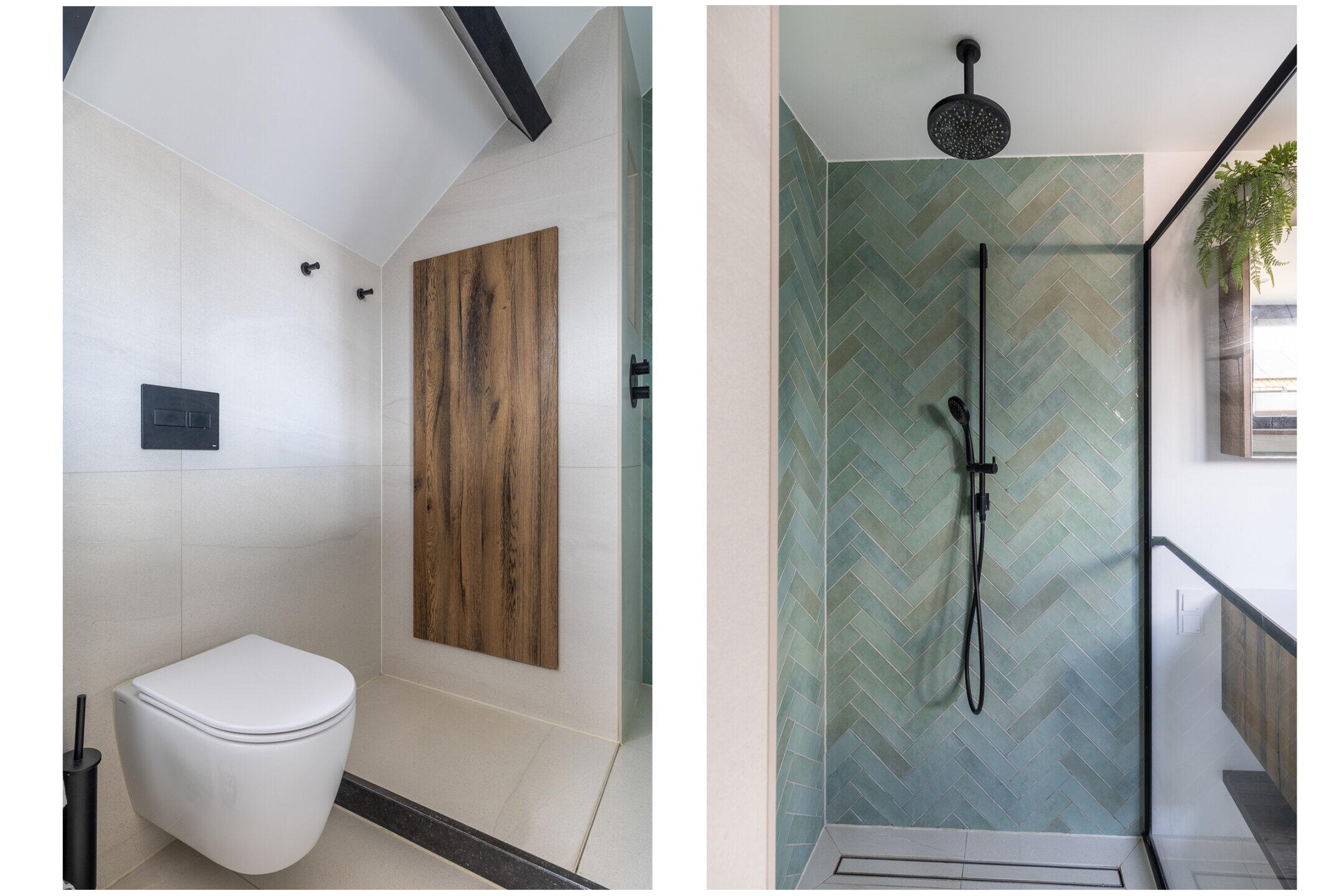- Ligbad, toilet, dubbele wastafel, inloopdouche