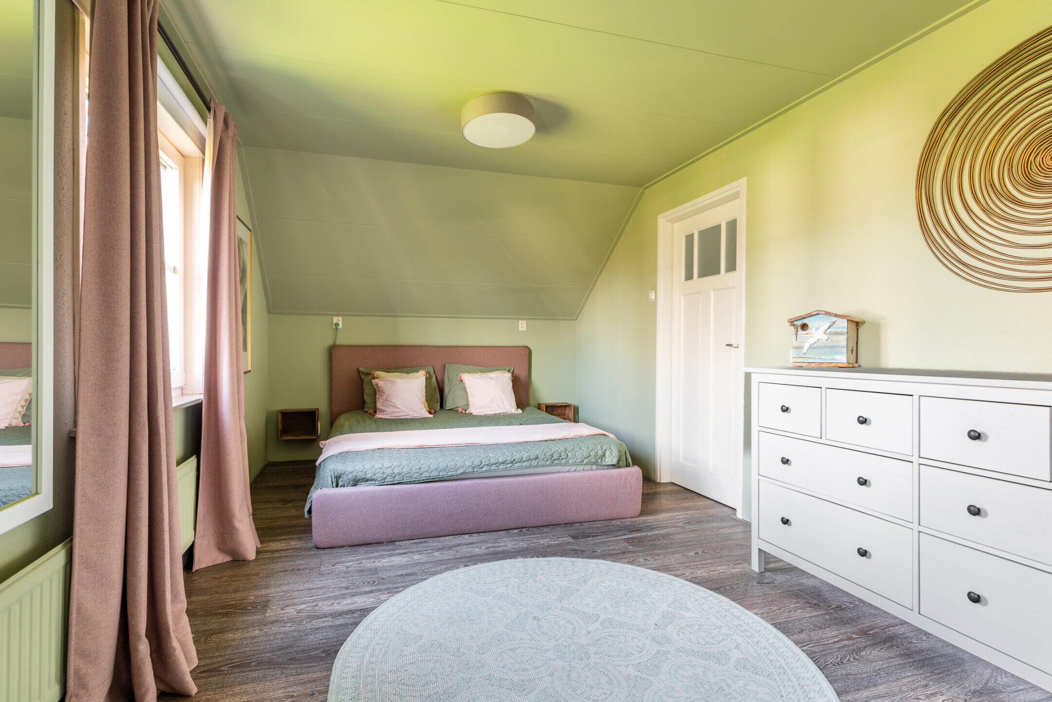 Slaapkamer 1 (ca. 5.92 x 3.04m) voorzien van een grote inbouwkast en met een mooi uitzicht over de tuin.