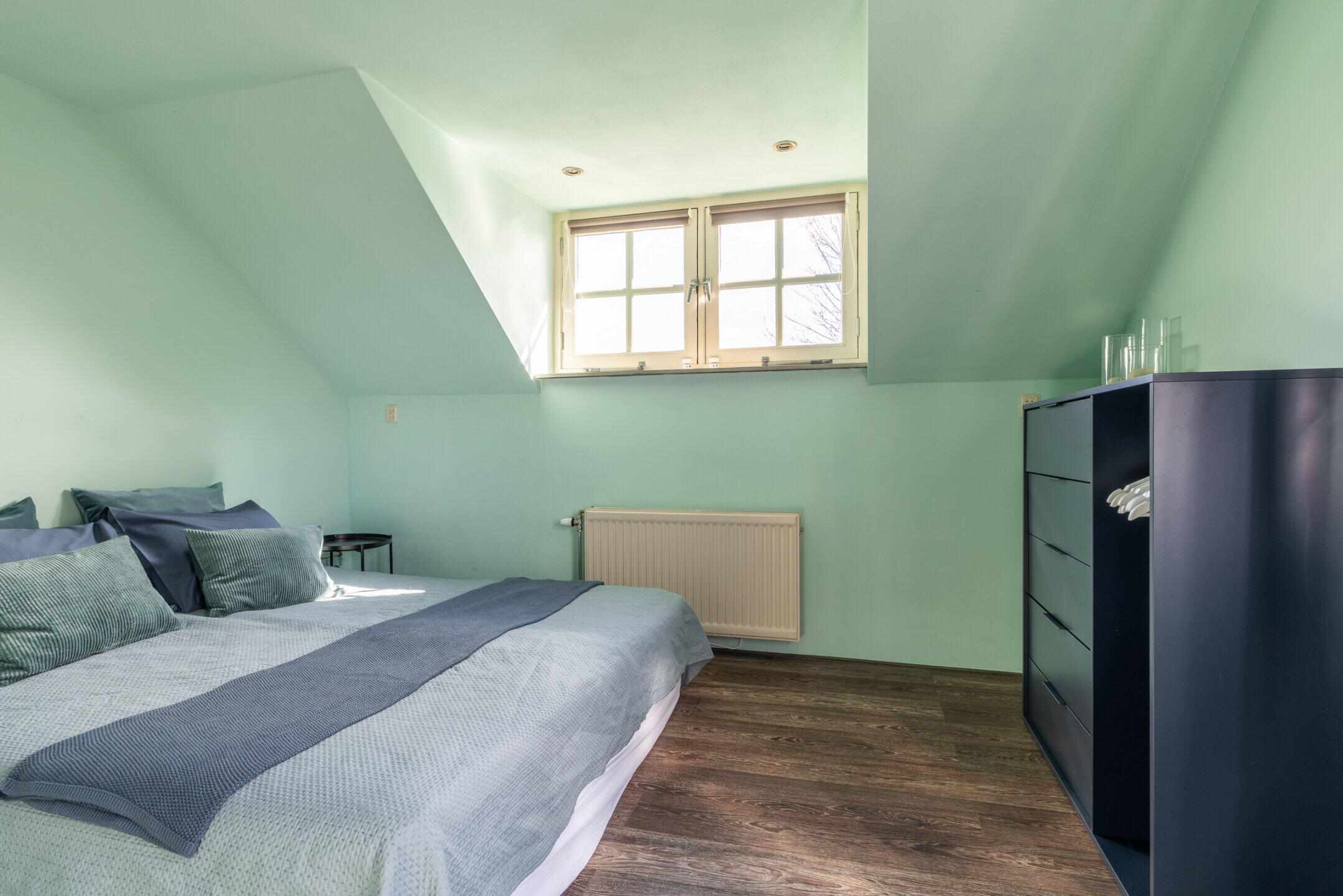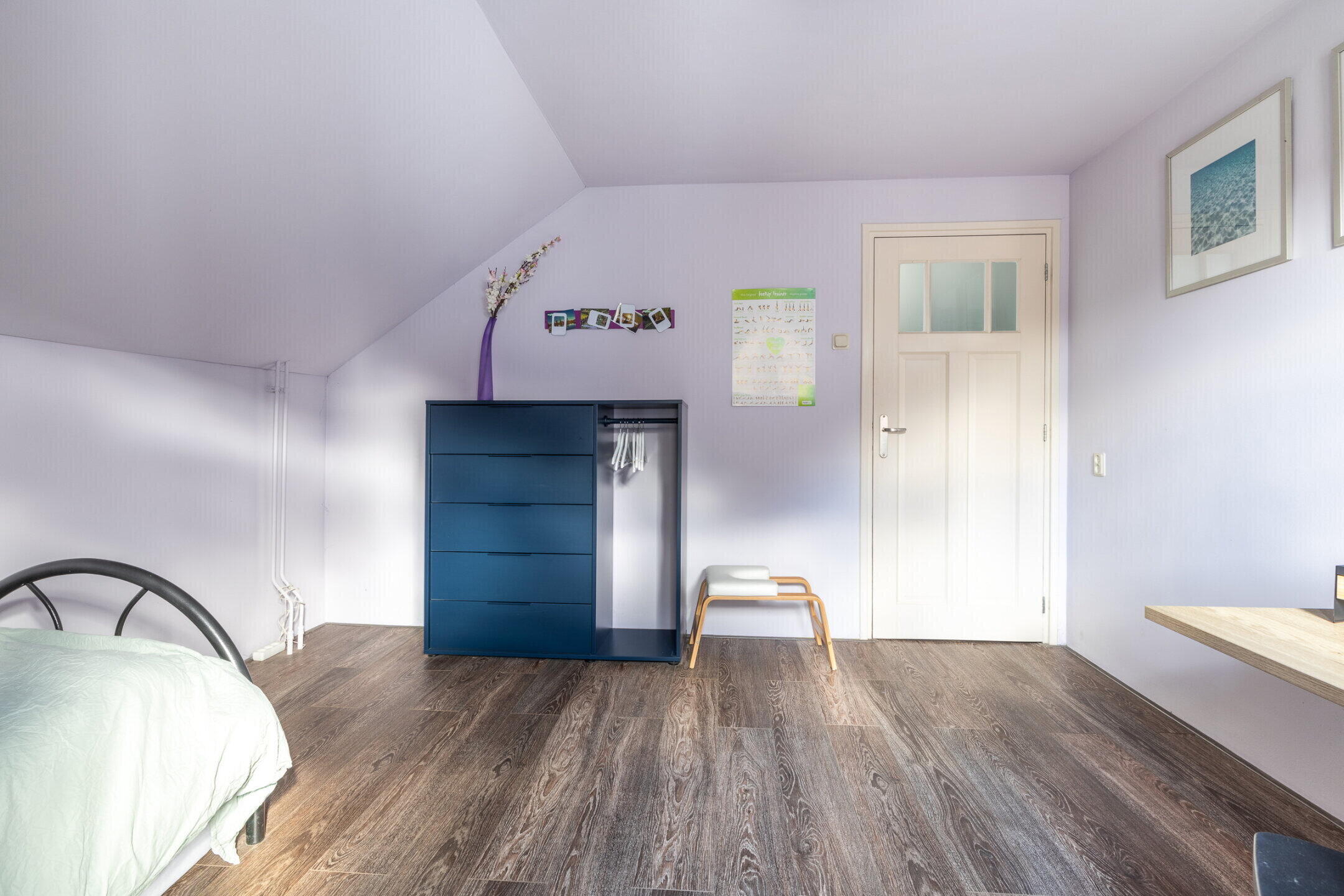 Boven de garage en bereikbaar via de bijkeuken vinden we een royale overloop (ca. 3.91 x 2.45m) met diverse bergmogelijkheden achter de schotten en een royale zolderkamer – slaapkamer 4 (ca. 3.73 x 3.43m) met een prachtige lichtinval door een kamerbrede dakkapel aan beide zijden.