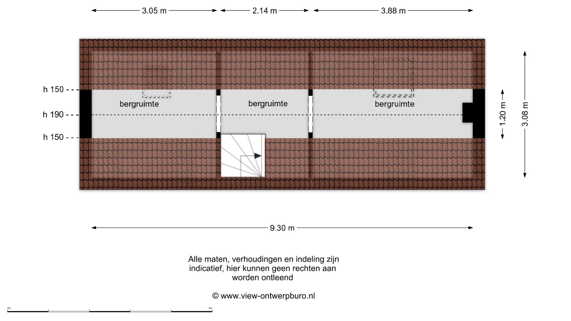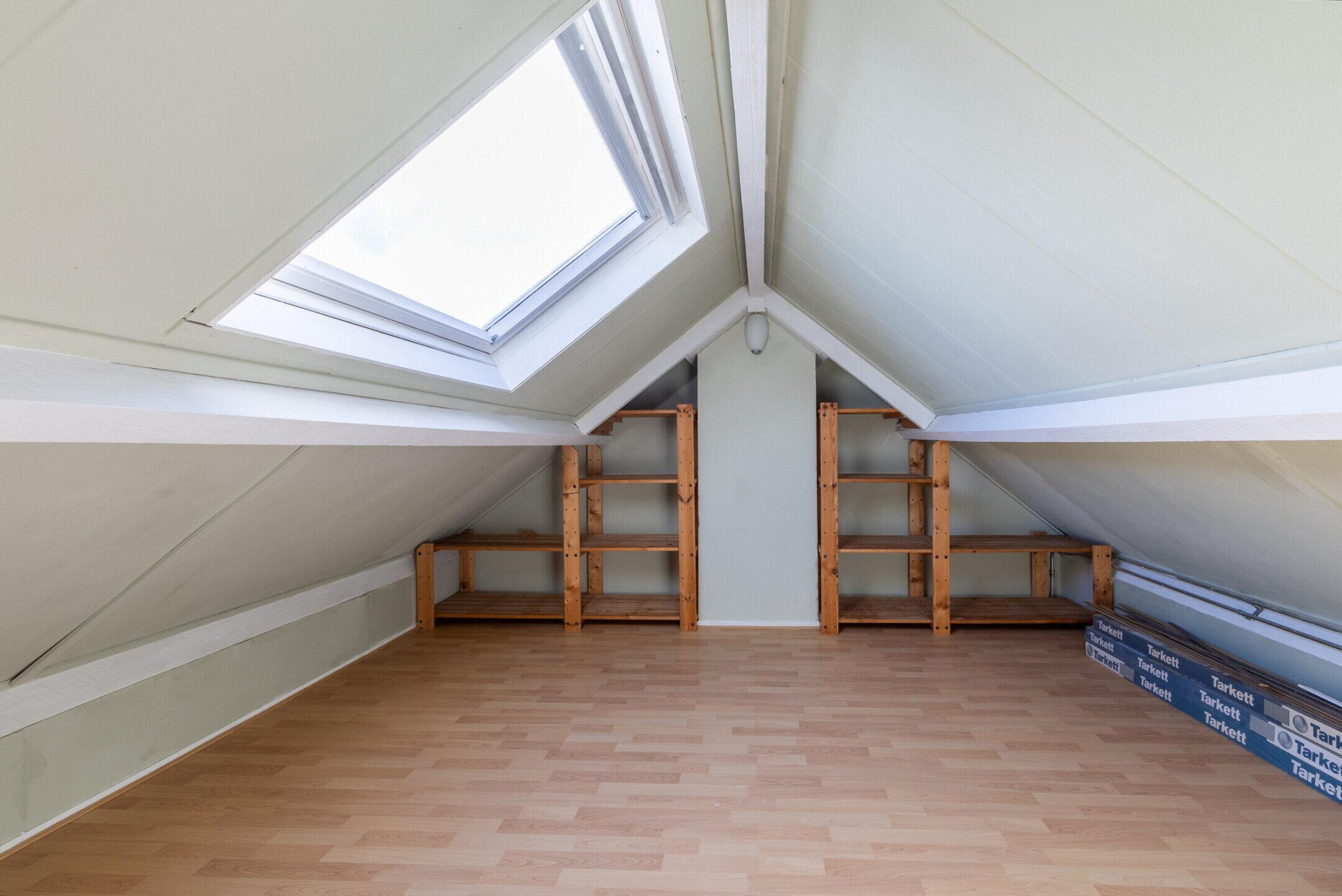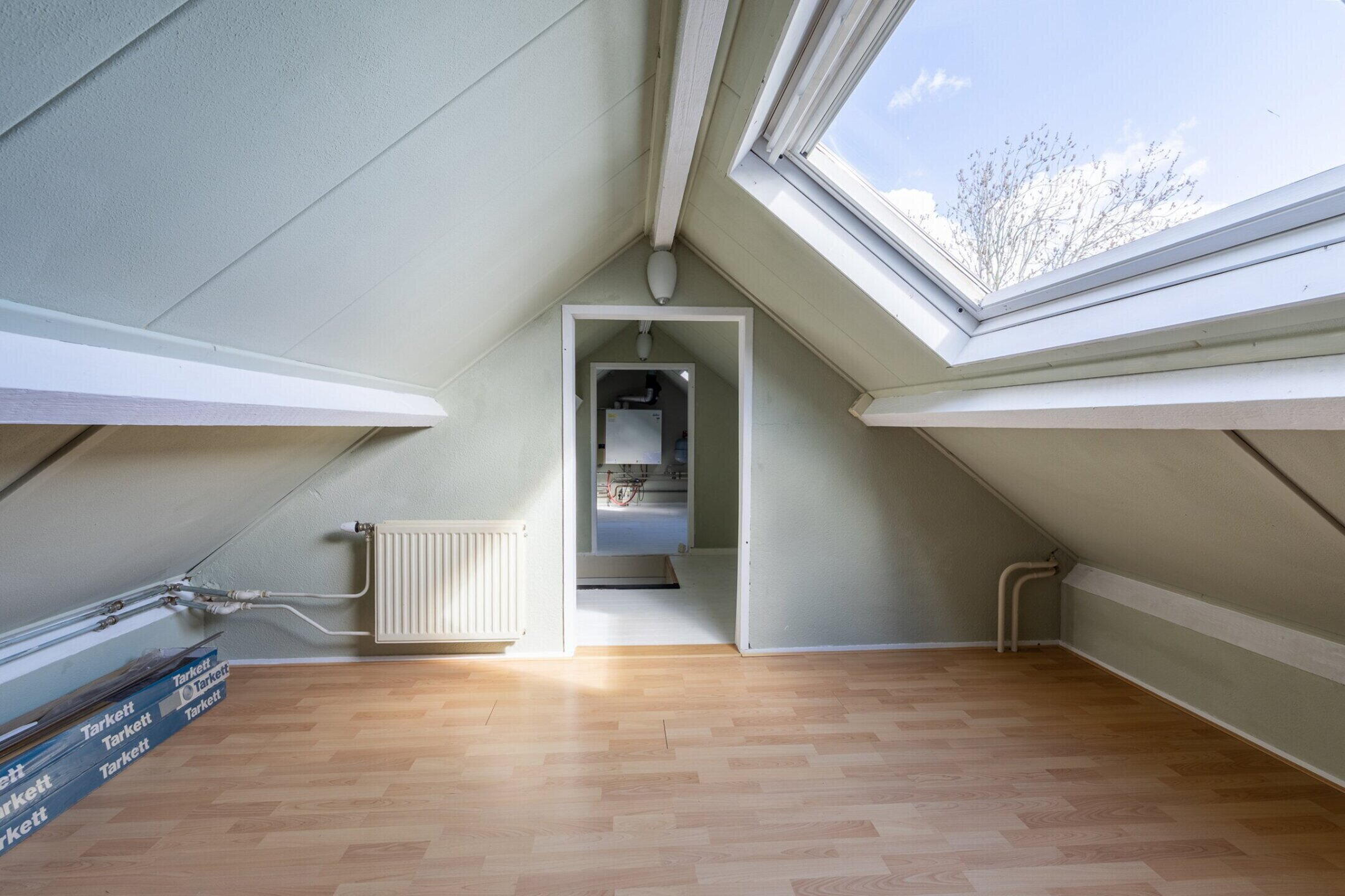 De royale en geïsoleerde bergzolder (ca. 9.30 x 1.20m) beschikt over twee kamers, ieder voorzien van een dakraam en tevens vinden we hier naast veel bergruimte de opstelling van de c.v. combiketel en de omvormer ten behoeve van de zonnepanelen.