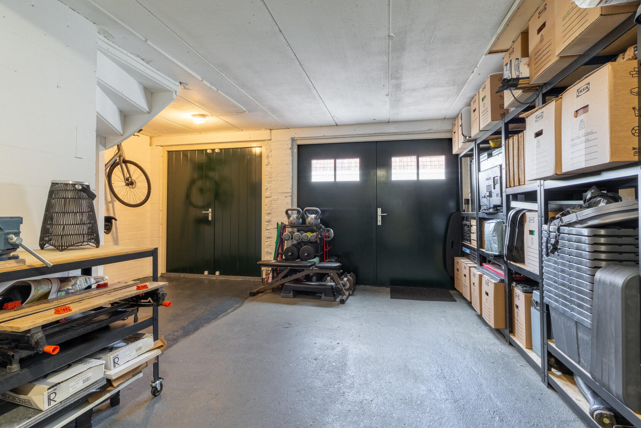 De inpandige garage (ca. 5.48 x 5.68/2.50m) biedt veel ruimte, is voorzien van elektra en twee dubbele openslaande deurpartijen.