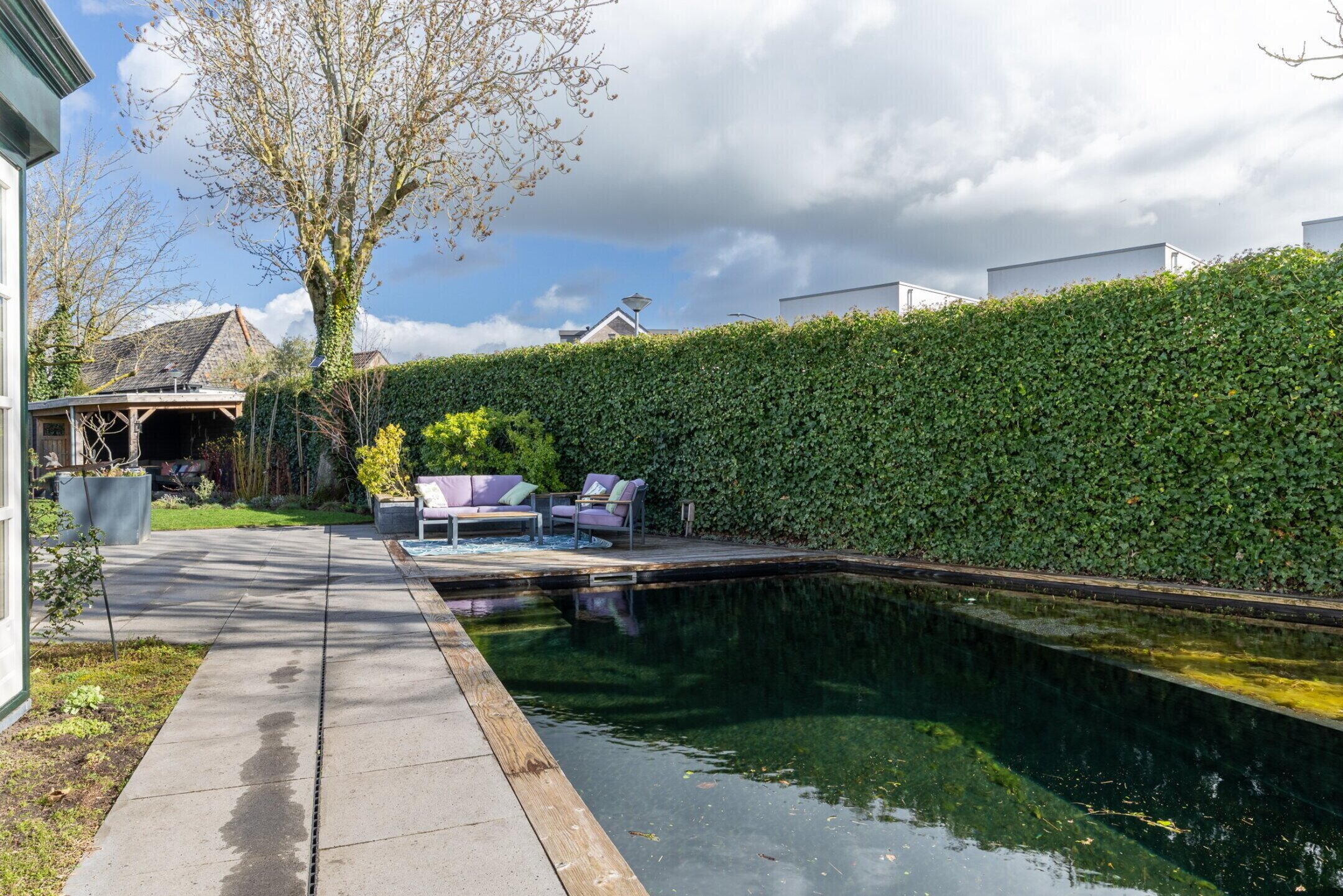 - Schitterende tuin met o.a. diverse terrassen, een loungehoek en een zwembad. Het verwarmde (warmtepomp) zwembad is door de huidige eigenaar recent tot natuurzwembad gemaakt, dit kan uiteraard weer eenvoudig worden teruggebracht naar een traditioneel zwembad;